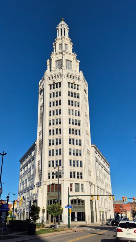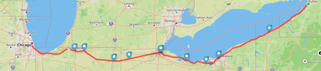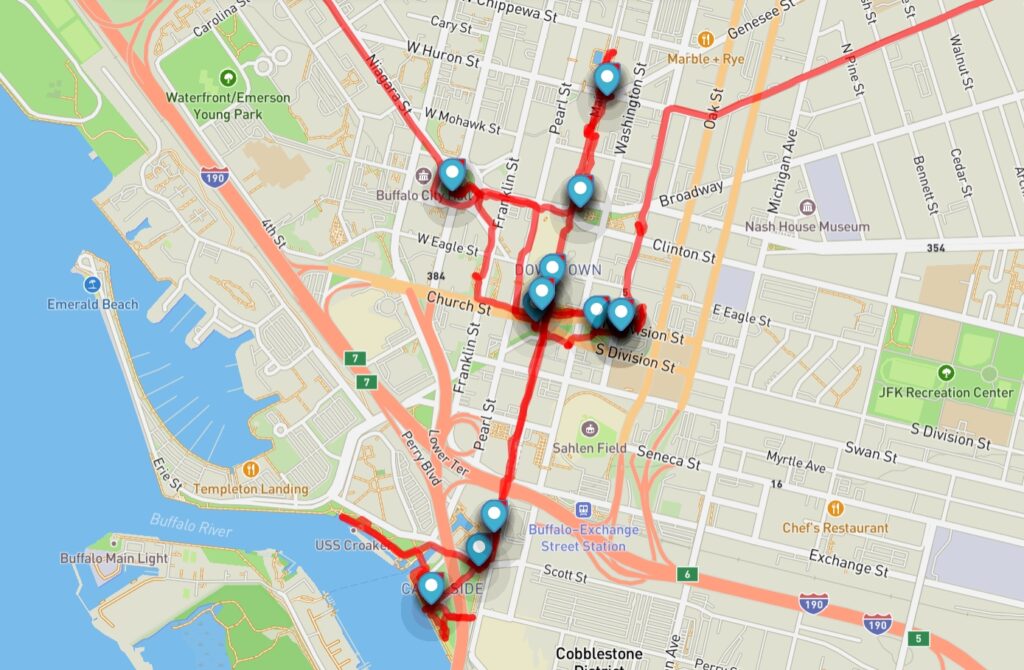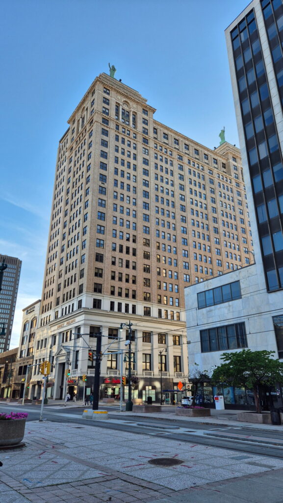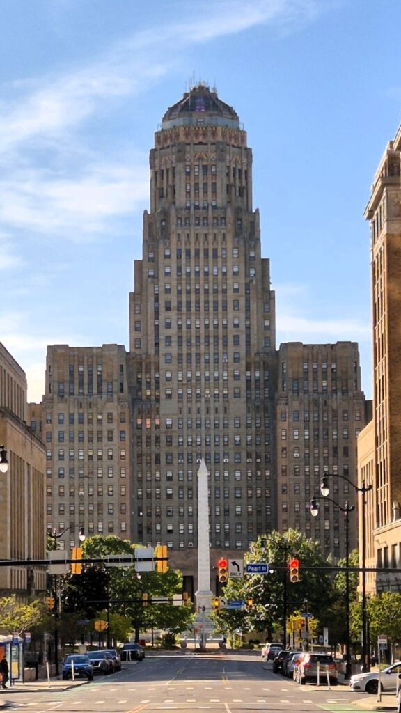 Z Niagary jadę autobusem nr 40 do Buffalo. Stąd po północy mam nocny pociąg Amtrak do Chicago. Na zwiedzanie miasta mam więc około 10 godzin. To dużo – miasto to było kiedyś ważnym miastem, obecnie podupadło, chociaż widać, że starają się np. przyciągnąć turystów. Mają kilka budowli z czasów świetności, wszędzie są tablice z opisami, jest ładny pork nadbrzeżny do którego można dojechać bezpłatnym tramwajem. Niestety są i bezdomni.