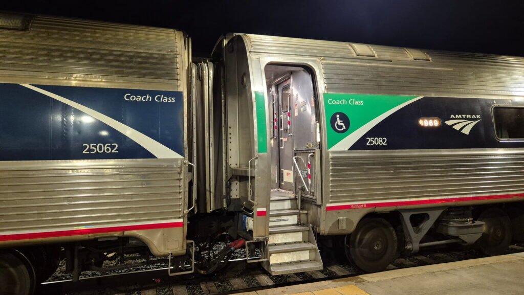 Chciałem przejechać się wielkim amerykańskim pociągiem Amtrak. Na trasie Nowy Jork – Buffalo – Chicago kursują takie pociągi. Opcja ta miała kilka zalet: spełniłem zachciankę, zaoszczędziłem na hotelu i zaoszczędziłem na przelocie. Koszt przejazdu 45 USD – kupowane w czerwcu. Nocleg był dobry – przejazd trwał 10 godzin, wygodne, szerokie i rozkładane fotele tylko strasznie zimno. Siedzenie obok miałem wolne a sąsiadami była 7 osobowa rodzina Amiszów.