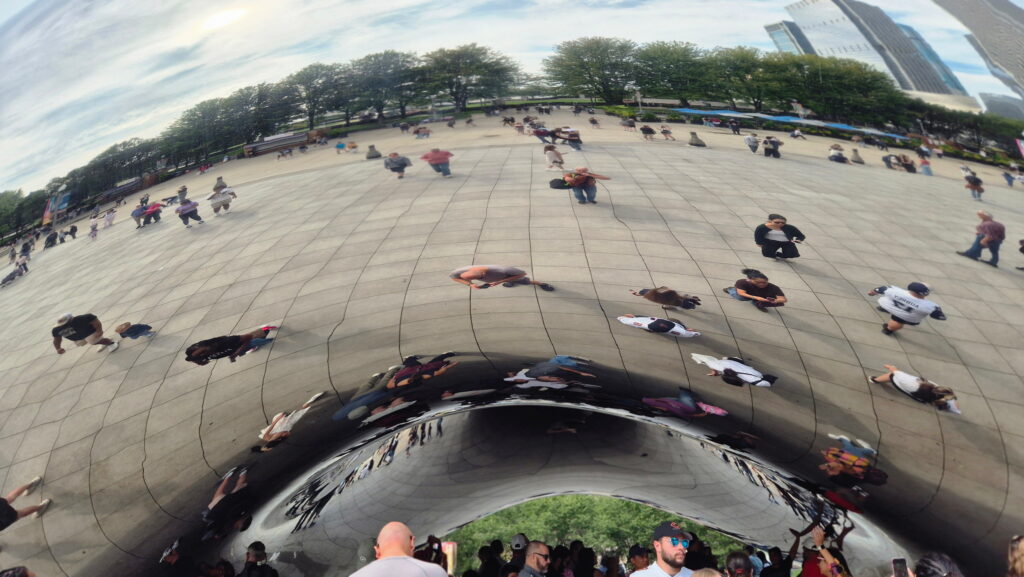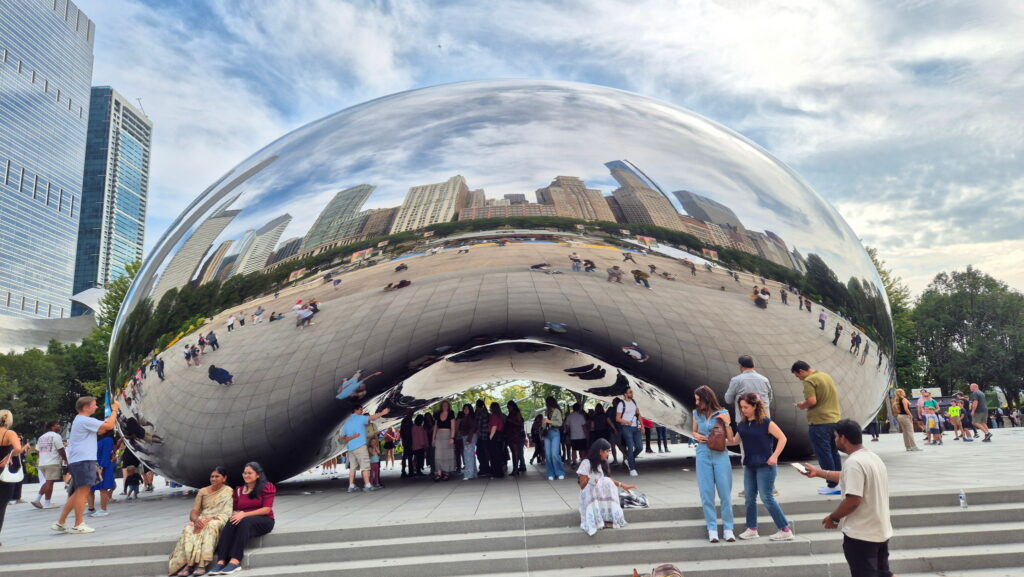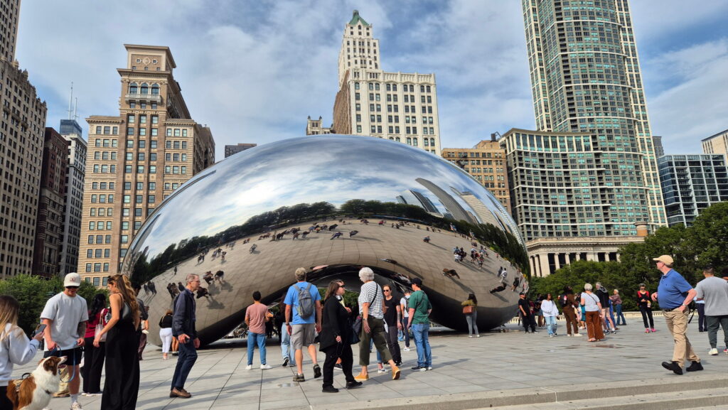 W Chicago byłem o godzinie 10. Po drodzę do hotelu miałem m.in. Park Millennium – z ikoną Chicago -fasolką (Clud Gate) i Crown Fountain.