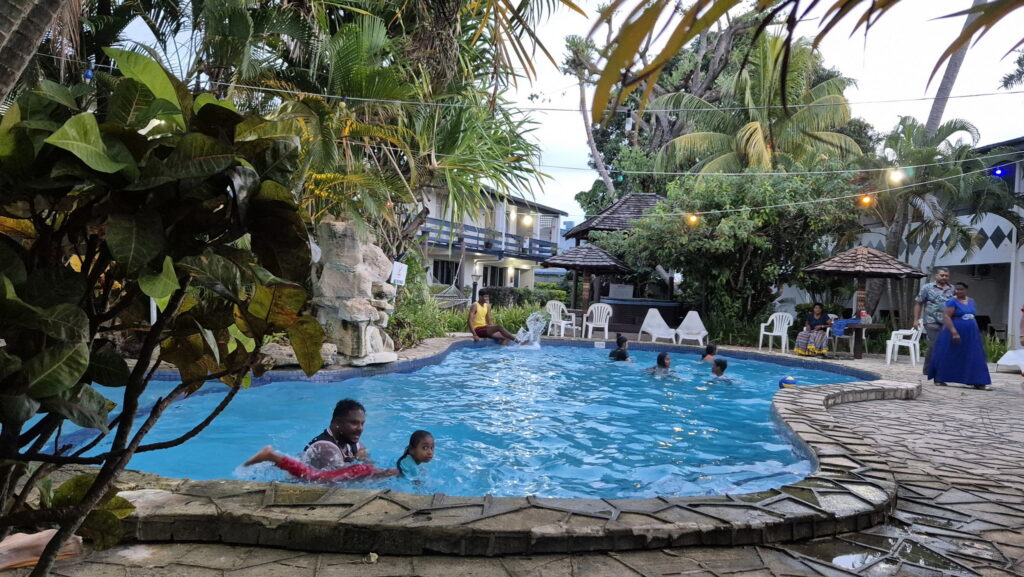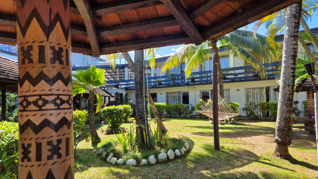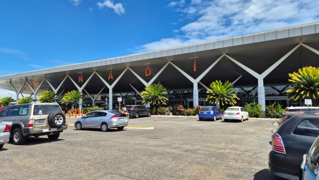 Na lotnisko zawiózł mnie busik hotelowy. Hotel może taki sobie, ale tani jak na Fidżi, z basenem, śniadaniem (marnym, ale jako jedyny w tej wyprawie miał taką opcje) i właśnie darmowym transportem na lotnisko. W Nadi to dobra opcja, gdyż transport publiczny jest tam w powijakach i niepoznawalny.