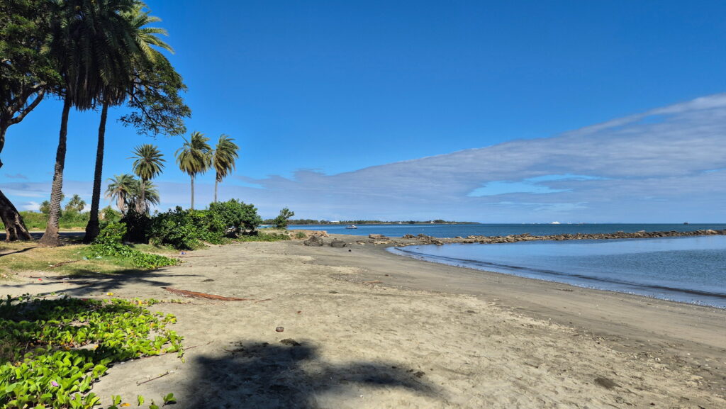 W niedzielę rano 14 września wybrałem się na plażę. Plaża nazywa się Wailoaloa Beach. Nie jest to może najpiękniejsza plaża, ale Fidżi to wyspa wulkaniczna, więc piasek nie jest najbielszy – ale te palmy są piękne. Aby zobaczyć tam plaże jak z folderu trzeba wybrać się na okoliczne atole. Ale to wymaga czasu i duuużych pieniędzy. Mój wyjazd jest wyjazdem budżetowym a na ładne plaże lecę już dzisiaj a wyląduje wczoraj. Będą to Hawaje i wyspa O’ahu.