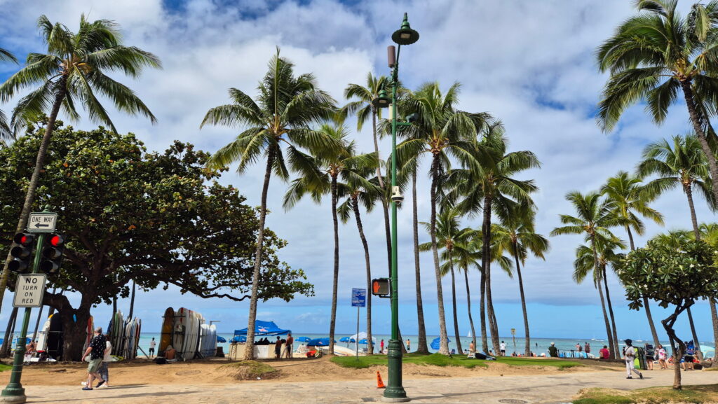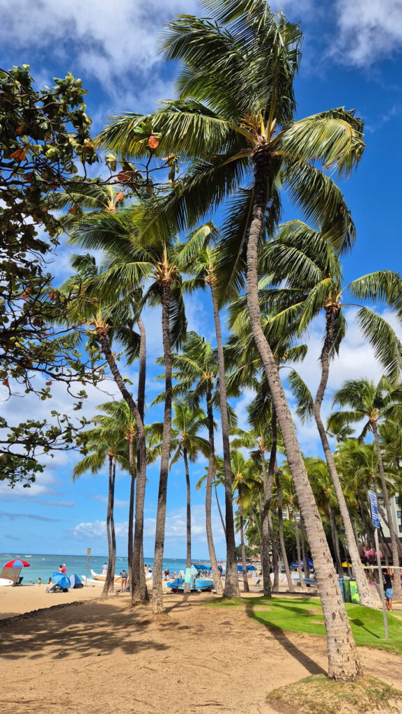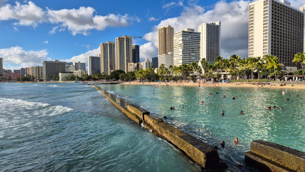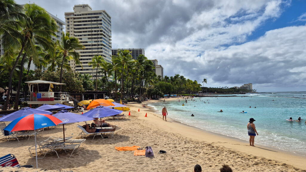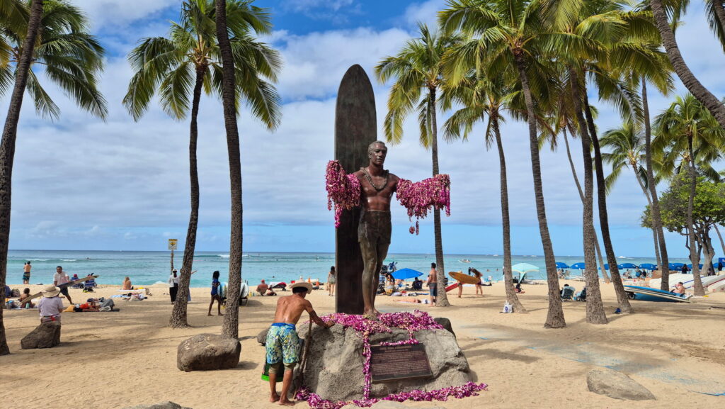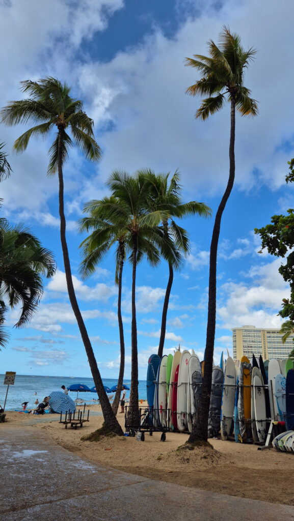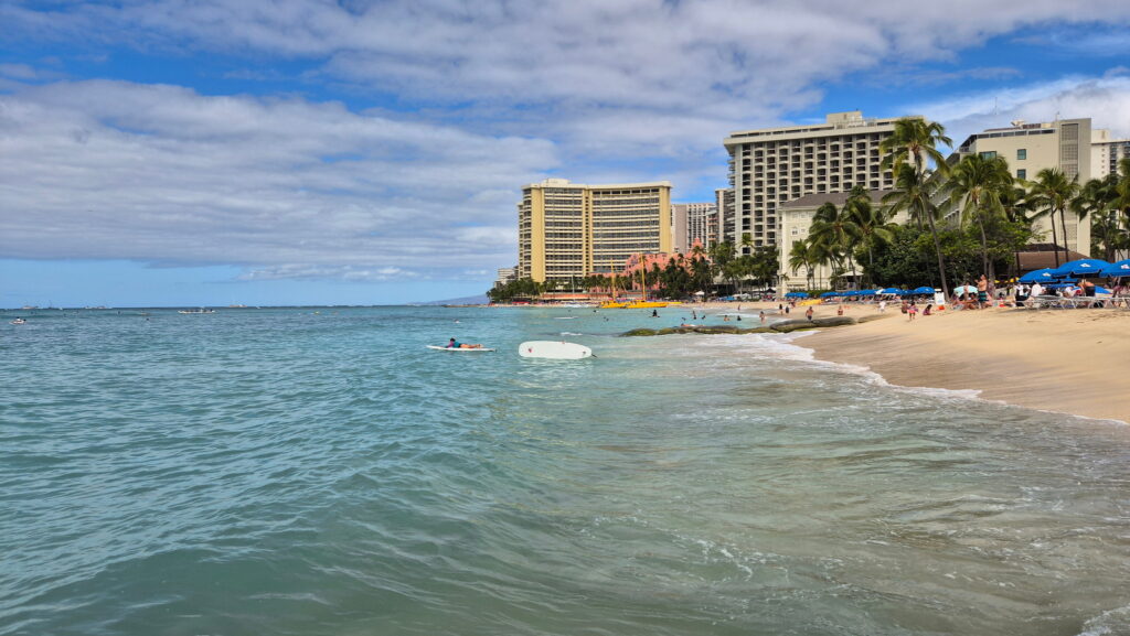 Hotel jak na wyjazd budżetowy mam dobry (i w promocyjnej cenie jak na Honolulu – normalne tu ceny to 600 zł i więcej) i tylko 160 m od plaży Waikiki. Rano udałem się plaże Waikiki, ale tylko w celu zwiedzania. Plan na dodatkową niedzielę w moim życiu to zwiedzanie Pearl Harbor i Honolulu.