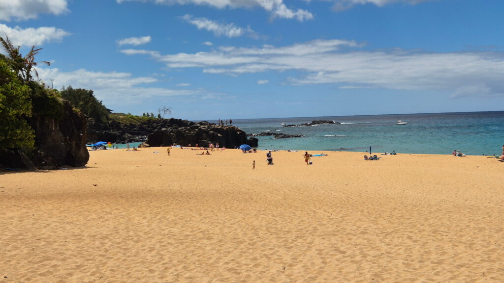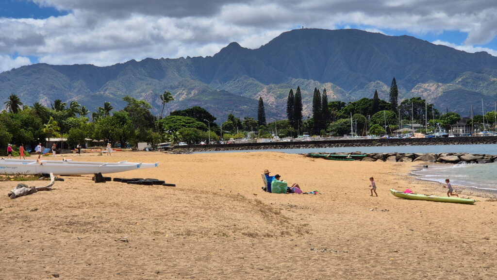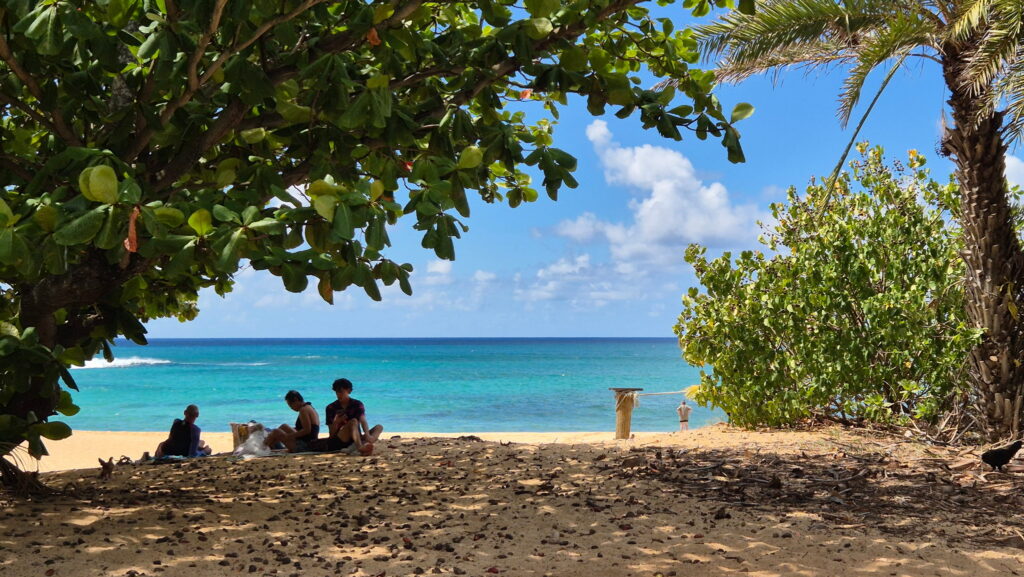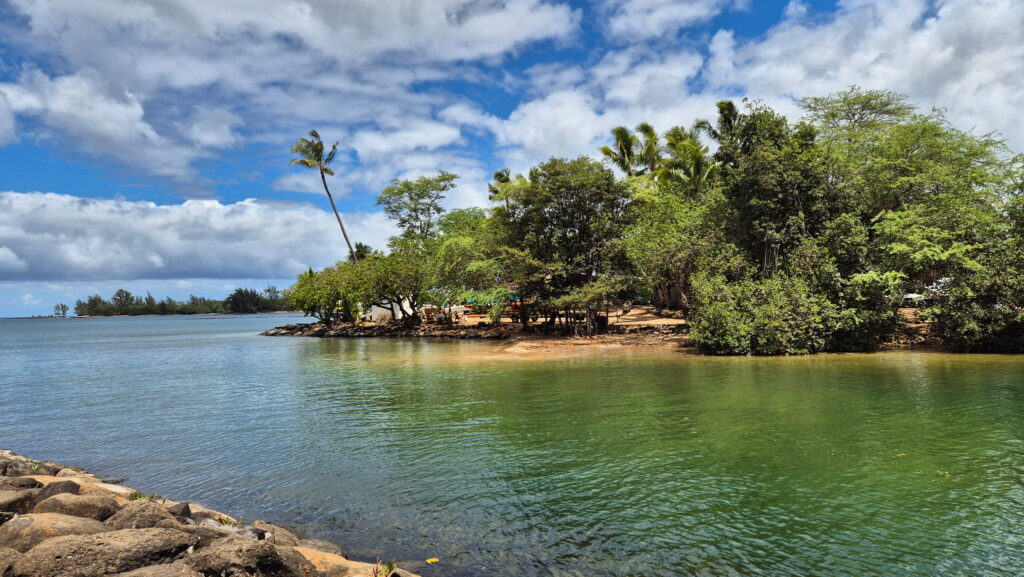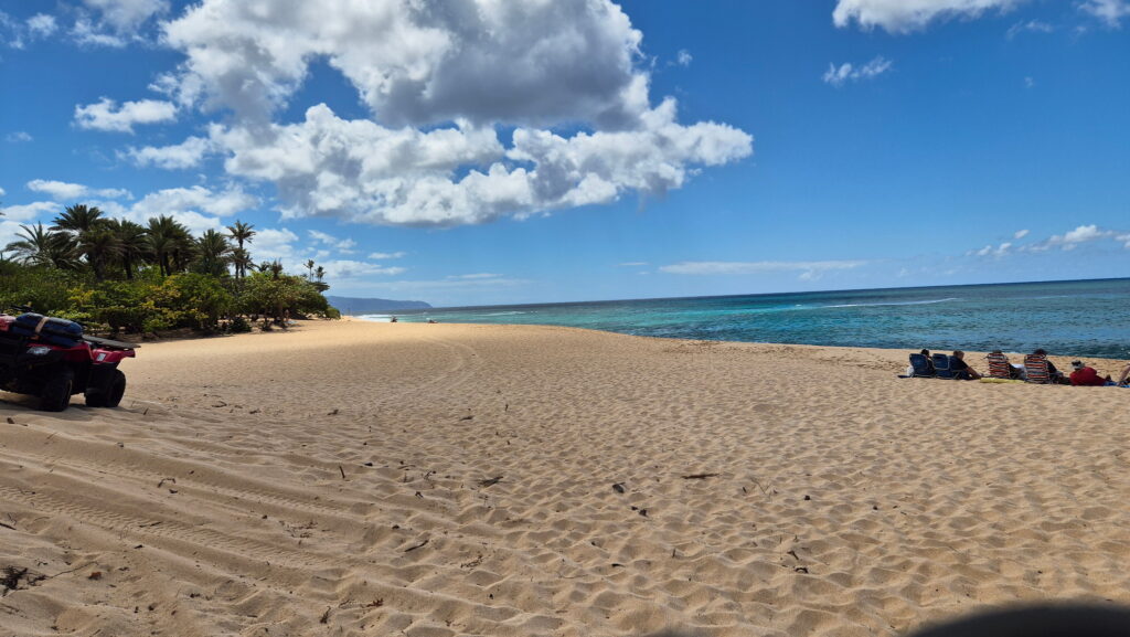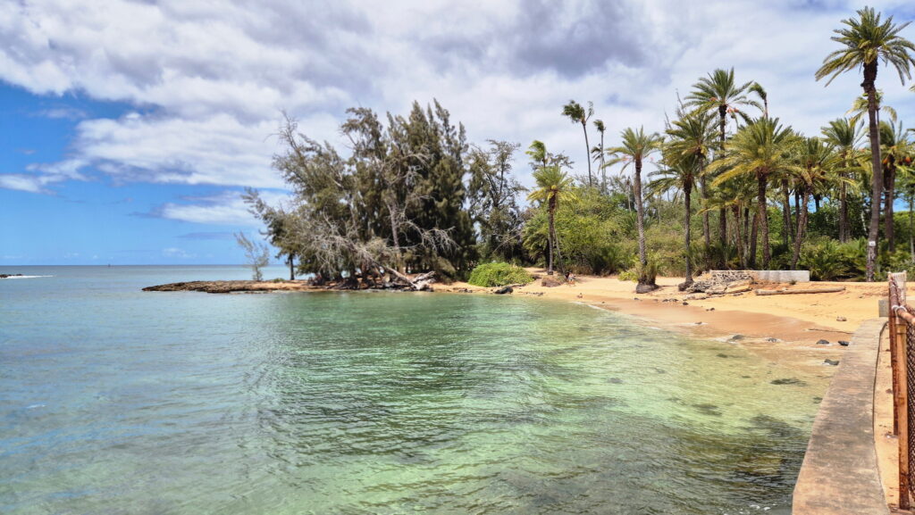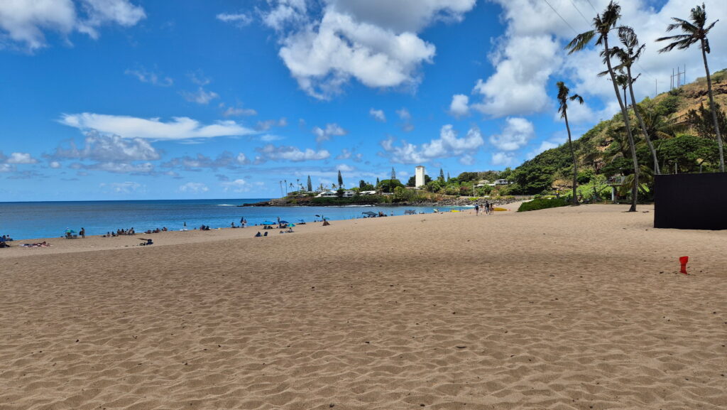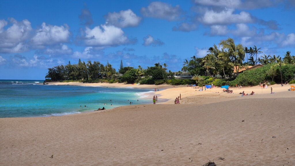Plaża Hale’iwa – położona jest w historycznym mieście Hale’iwa. Ta ciemno-żółta piaszczysta plaża jest jednym z niewielu miejsc na wyspie, gdzie można usiąść i obserwować wschód i zachód słońca. Jest rozległa i jest w odległości spaceru od sklepów, knajpek i zwiedzania. Jest to atrakcyjne miejsce rodzinne.