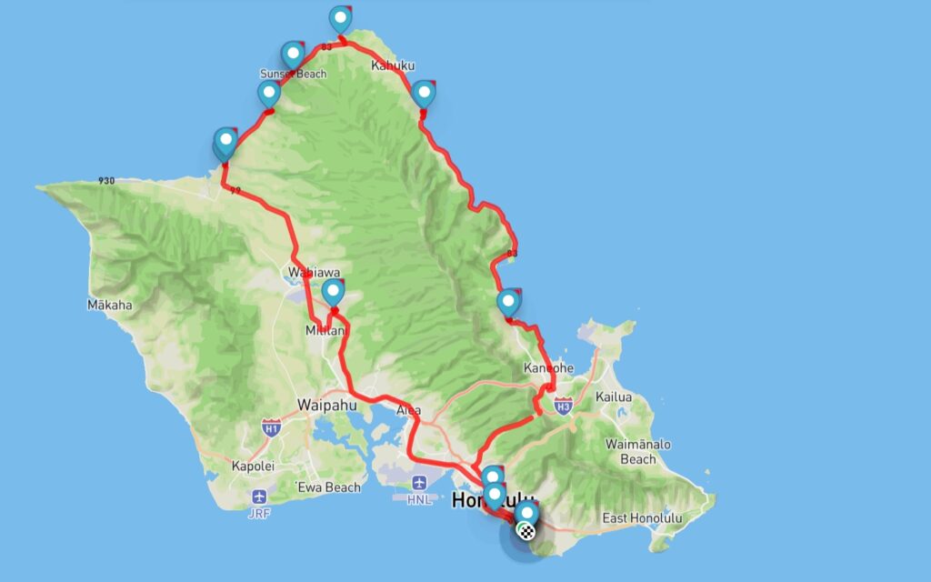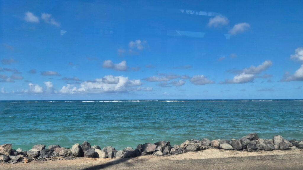 Wyspa O’ahu jak i całe Hawaje są zbyt piękne aby przeleżeć cały krótki pobyt na plaży, nawet tak sławnej jak Waikiki. Dzisiaj zwiedzam północną część wyspy. Wsiadam do autobusu nr 52 który dojeżdżam do miejscowości Haleʻiwa leżącj na północy, na tzw. North Shore. Dalej jedę autobusem nr 60 (który wraca do Honolulu trasą wzdłuż wybrzeża północnego i płn-wsch. i kursuja co 0,5 godz). Wsiadam, podjeżdżam, wysiadam w ciekawym miejscu i wsiadam ponownie. I ta petla przez cały dzień to koszt 7,5 USD.