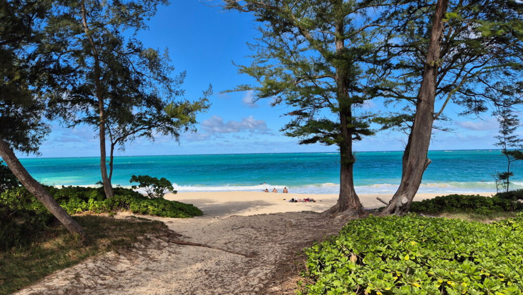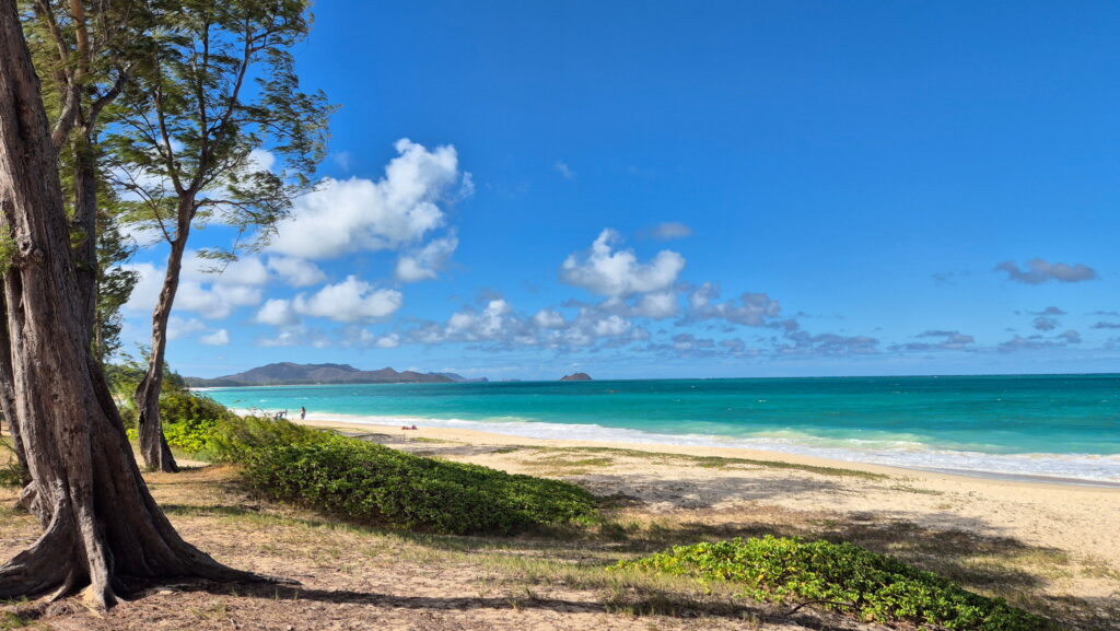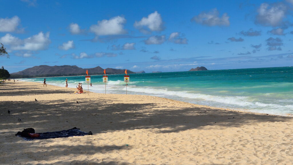 Kailua Beach – położona tuż pod zatoką Kaneohe i niedaleko bazy sił powietrznych, ta plaża słynie z doskonałego miejsca do pływania i windsurfingu. Ładny drobny piasek – idealny do opalania i rekreacji oraz tło maleńkich przybrzeżnych wysp sprawia, że jest to jedna z najpiękniejszych plaż na Oahu.