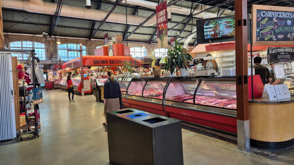 Okazało się, że linie lotnicze United nie dają jedzenia w lotach nawet powyżej 5 godzinnych. Myślałem, że będzie normalne jedzenie, a było tylko po ciasteczku. Tak więc głodny, tylko o dwóch ciasteczkach, jadę z lotniska UP Express-em na Union Station a potem od razu do St. Lawrence Market, gdzie ma być dobre jedzenie. Okazało się, że w tym przypadku internety nie kłamały i jedzenie było i dobre i obfite i tanie (w porównaniu z amerykańskimi cenami na Hawajach).