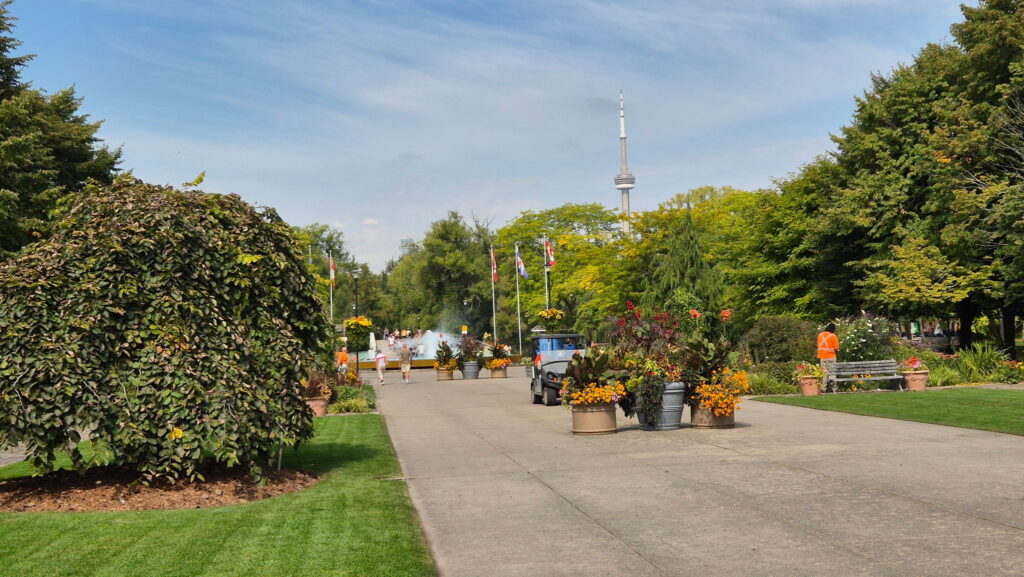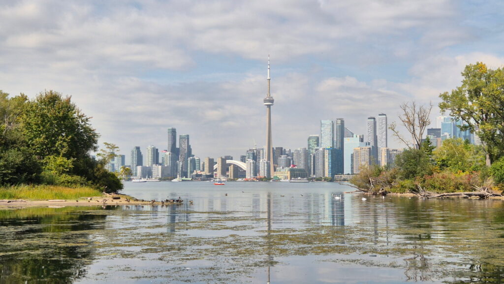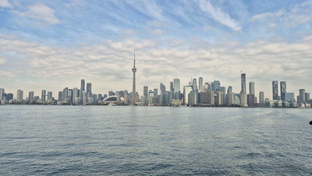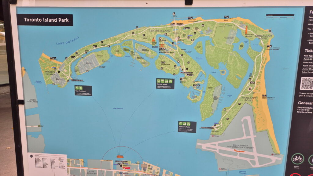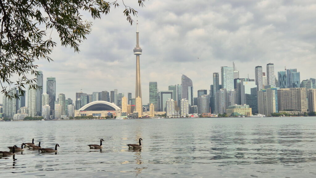 Dzisiaj nie planuje wielkiego zwiedzania Toronto. Po całonocnym locie i z bagażem (podręcznym) byłoby to zbyt wyczerpujące. Udaję się do Toronto Island Park, który położony jest na wyspach na jeziorze Ontario. Płynie się tam promem z Jack Layton Ferry Terminal. Główne wyspy to Centre Island, Toronto Island i Ward’s Island. Chcę tam zrelaksować się wśród zieleni i gęsi kanadyjskich 😉 a także, a może przede wszystkim zobaczyć panoramę Toronto. Tamtejsze punkty widokowe są do tego najlepsze.