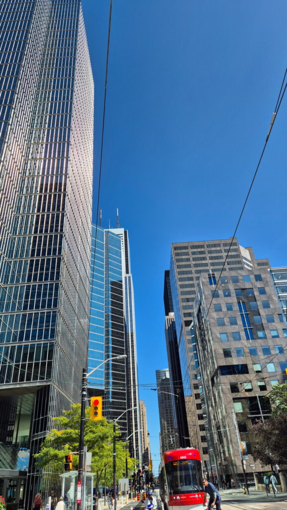 Mając bilety po 1 CAD, wstaję rano i jadę z powrotem do Toronto – bo ile czasu można patrzeć na wodospady – nawet te. Dzisiaj zaplanowałem pełniejsze zwiedzanie Toronto. Magabus znowu jechał nie dwie godziny ale trzy. Dało się dospać. W Toronto zaczynam znowu od posiłku i kawy w St. Lawrence Market a potem zwiedzam.
