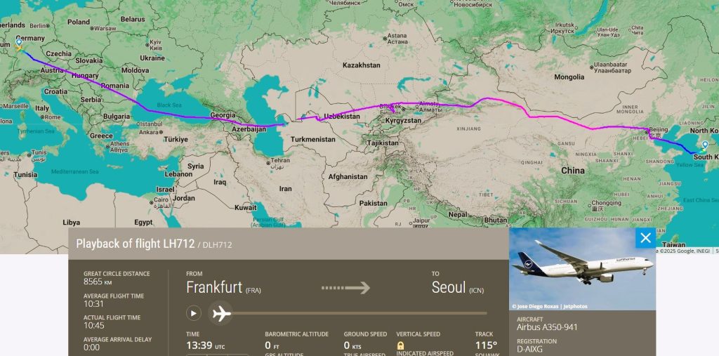 2. Lot Frankfurt (T1) – Seul (T1) 15:30 – 9:55 (11h25) LH A359 LH712 m.33A
