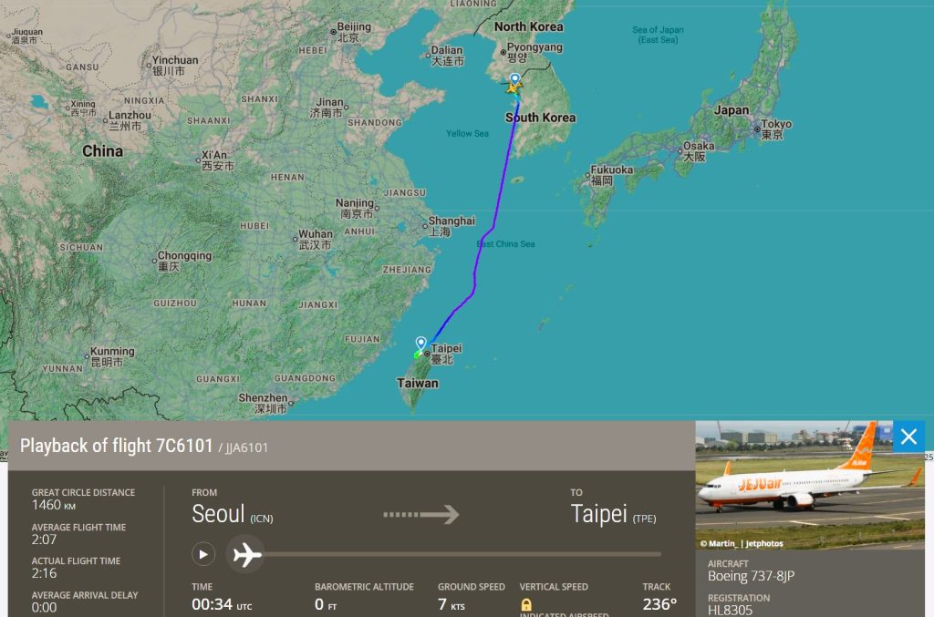 3. Lot Seul (T1) – Tajpej (T1) 9:05-10:50 (2h45) JejuAir B738 7C6101 m.20F