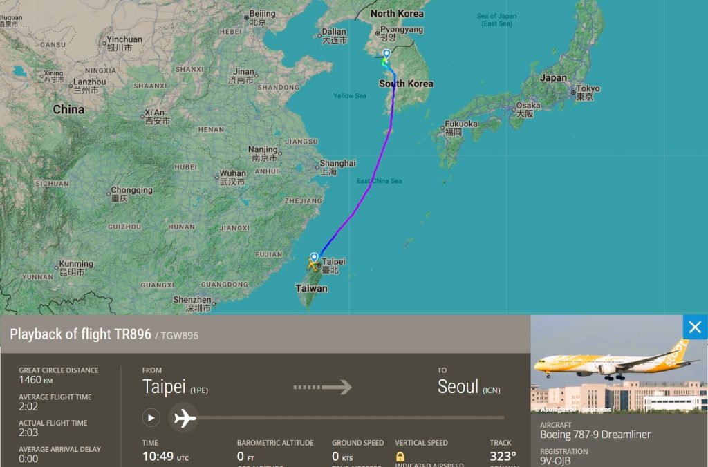4. Lot Tajpej (T1) -Seul (T1) 17:40-21:20 (2h40) Scott B789 TR896 m.37H