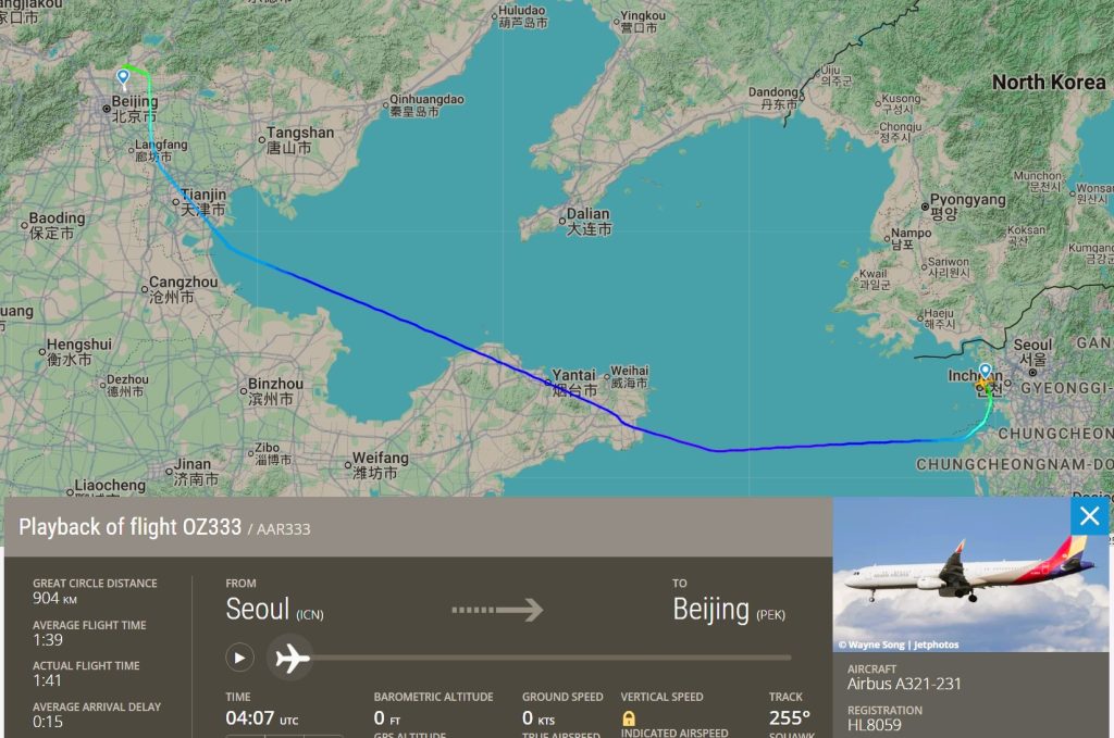 5. Lot Seul (T1) – Pekin (T3) 12:50-14:00 (2h10) Asiana A321 OZ333 m.22K