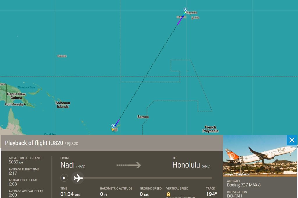 8. Lot Nadi (wylot ni. 13:35)- Honolulu (przylot sob. 22:10) (6h35) Fiji Airways B38M FJ820 m.32F