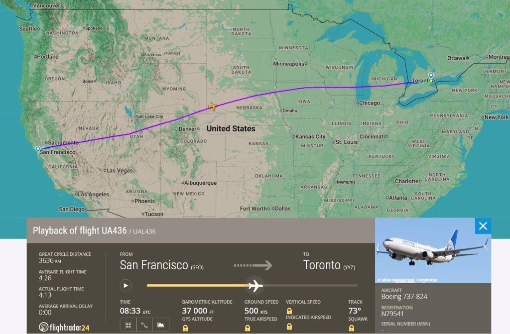 10. Lot San Francisco (T3) – Toronto (T1) 23:00-7:00 (5h) United B738 UA436 m.35F