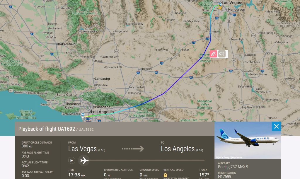12. Lot Las Vegas (T3) – Los Angeles (T7) 10:47- 12:05 (1h18) United B737-9 UA1692 m.32A