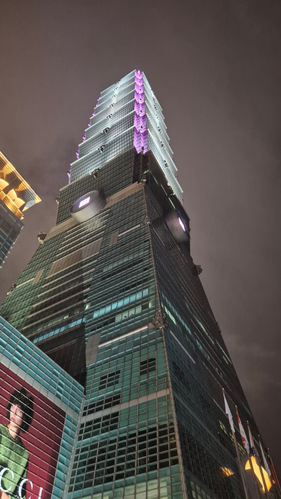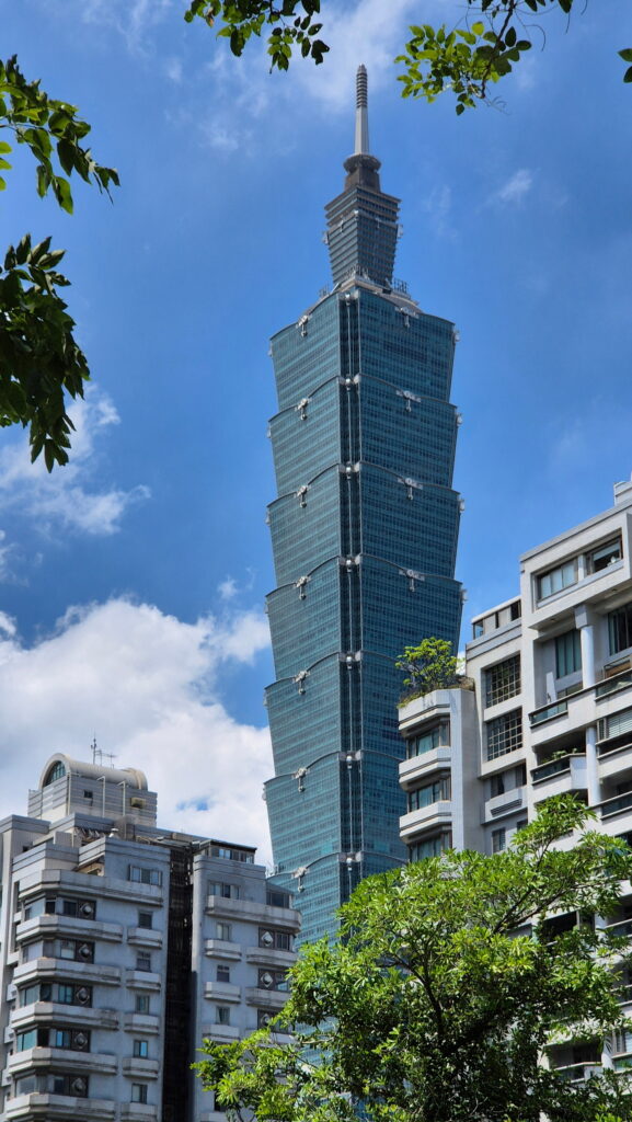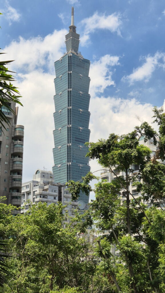 Jak to w tropikach bywa, około godziny 15 nadeszła wielka ulewa. Ja już, na szczęście, wróciłem z pierwszego zwiedzania do hotelu. Ale jak to też bywa w tropikach, ulewa ta szybko skończyła się, więc udałem się tajpejskim metrem obejrzeć dumę Tajwanu – wieżowiec Taipei 101.